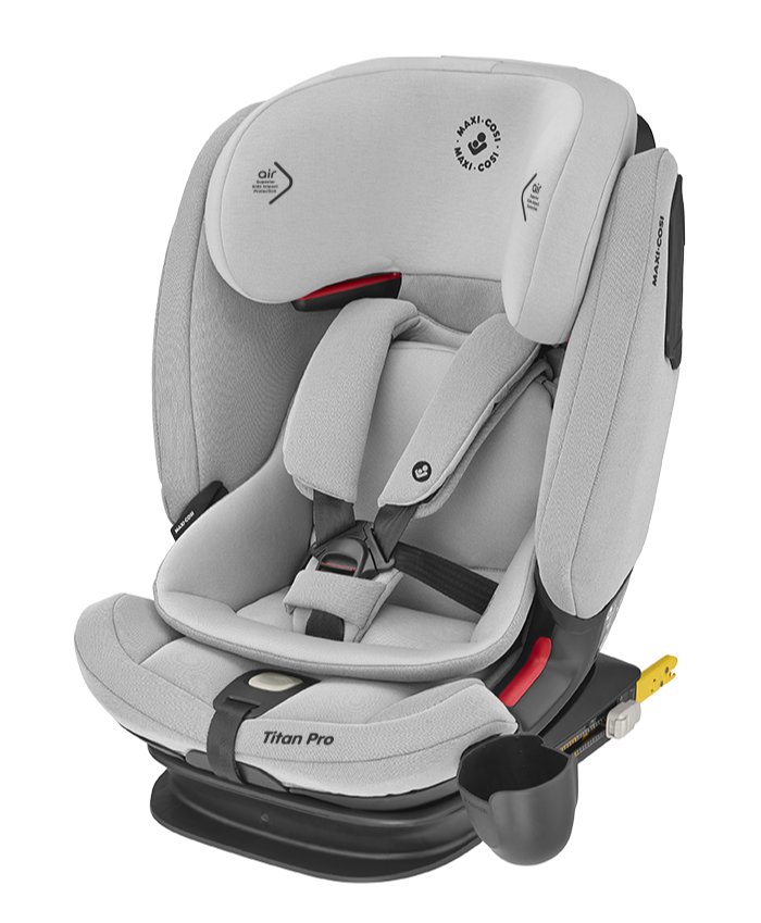 Titan Pro si utilizza inizialmente con il cuscino riduttore imbottito e le cinture a 5 punti che trattengono il bambino (Gr. 1), successivamente si trasforma in Gr. 2/3 da usare in combinazione con le cinture a 3 punti dell’auto.